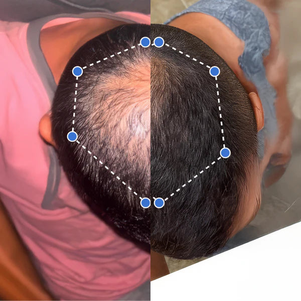 Notó un crecimiento visible de cabello nuevo en áreas previamente peladas dentro de las 5 semanas de uso constante.